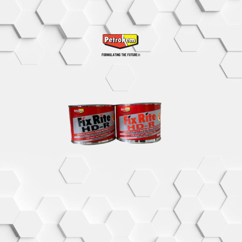 FIXRITE® HDR is a two component, high bond strength epoxy adhesive specially developed to meet the increasing demand for high bond strength adhesives. An outstanding solvent free epoxy resin based FIXRITE® HDR adhesive, bonds a wide variety of materials including metal, wood, glass, ceramic, cement, concrete, earthen-ware, granite, fiberglass, hard plastics, hard rubber and hard leather to themselves and to other rigid surfaces. It therefore has many uses in households, engineering applications and industries, such as domestic appliances, electrical/electronic applications FIXRITE® HDR is electrically non conductive-hence useful in the repair of plugs, connections, sealing of circuits etc.) civil engineering applications, (fixing of tiles, bonding of steel to concrete, sealing cracks in pipelines, water tanks, swimming pools, bathrooms, roofs, waterproofing in between tiles etc.) ship building industry, aircraft industry etc. FIXRITE® HDR is recommended for archaeological conservation work such as repairs to ancient statues etc. FIXRITE® HDR is mouldable to any shape and hence has many uses in repair work. ie. for remaking or replacement of missing parts or pieces etc. and used in mould making, model making etc. FIXRITE® HDR could also be mixed with saw dust to repair rotten areas in wood. FIXRITE® HDR could be mixed with pigments when coloured adhesive is required