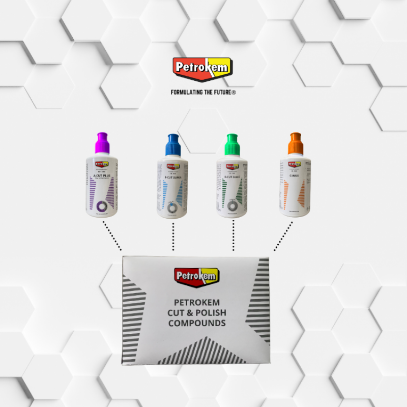 Petrokem A-Cut Plus is a water based cutting compound specially designed for the vehicle re-finishing and detailing industry. The product can be used to remove scratches (incurred due to the usage of sand paper P1500) completely. The resultant surface is a gloss finish that can be enhanced by using Petrokem A-Cut or Petrokem B-Cut Super. The gloss level can be further improved by using B-Cut Plus or B-Cut ZeroC. The product is recommended to be used with an electric or air driven polisher coupled with a foam or wool buffing pad.